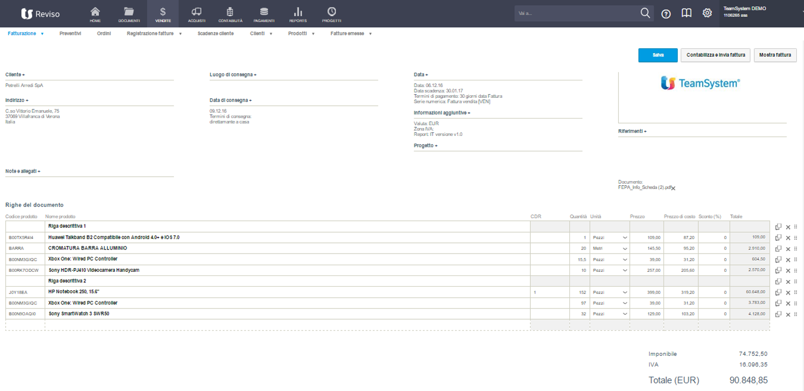 A volte creare una fattura per un nuovo cliente, inviare l’e-mail e registrarla in contabilità può essere un’operazione lunga e dispendiosa. Contabilità in Cloud ti viene incontro consentendoti di creare, inviare e registrare una fattura in pochi minuti. Con un solo click, dopo aver inserito il cliente e i prodotti/servizi da vendere, invii la fattura per e-mail e la registri in contabilità. Per di più Contabilità in Cloud ti informa se il cliente ha ricevuto e visualizzato la fattura.